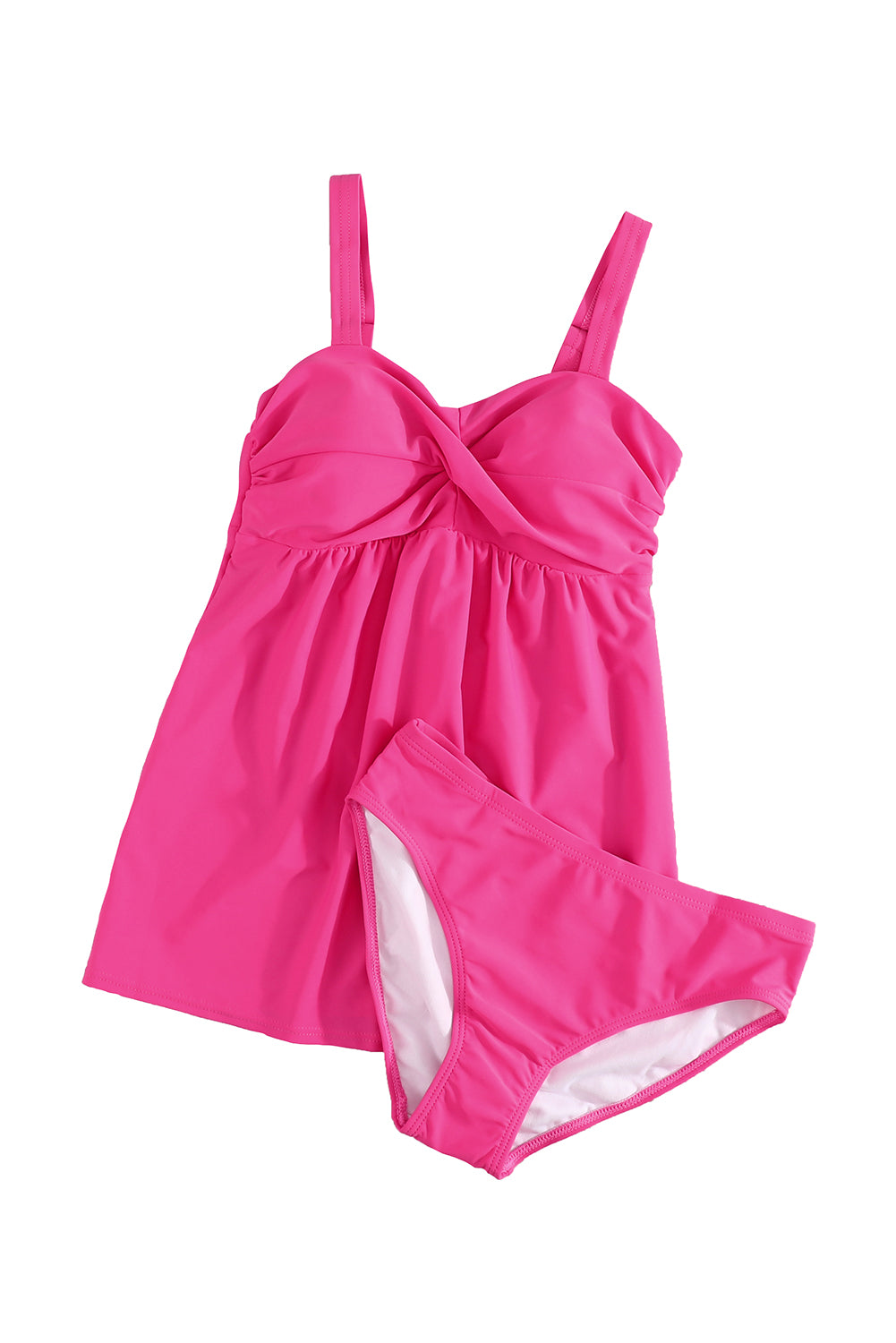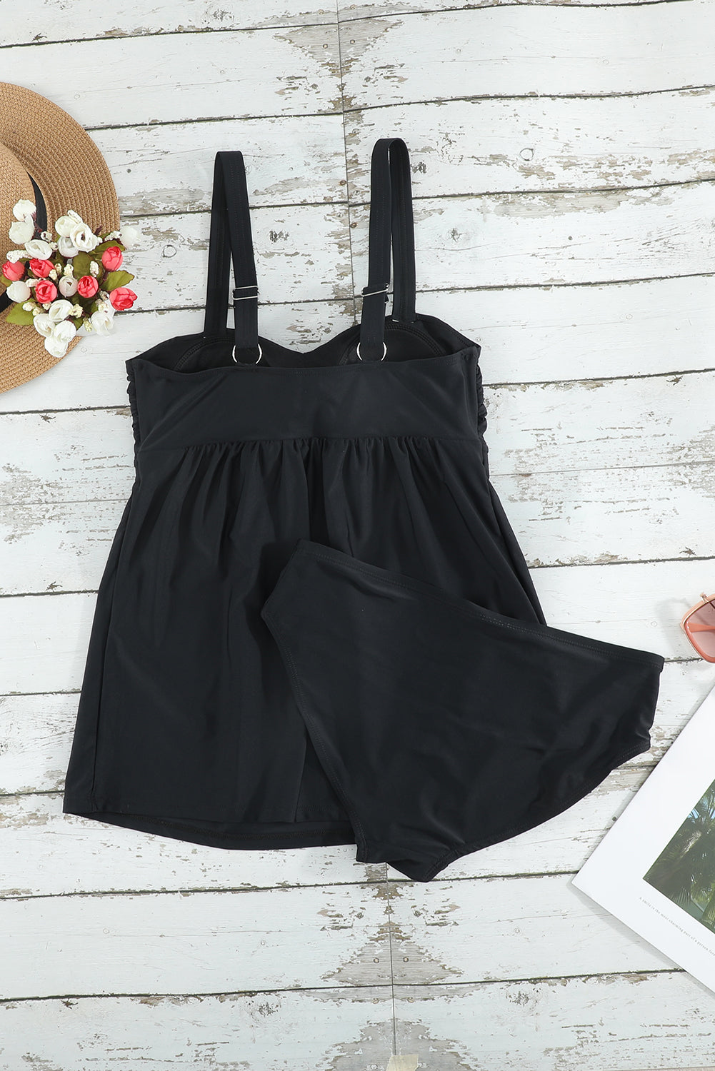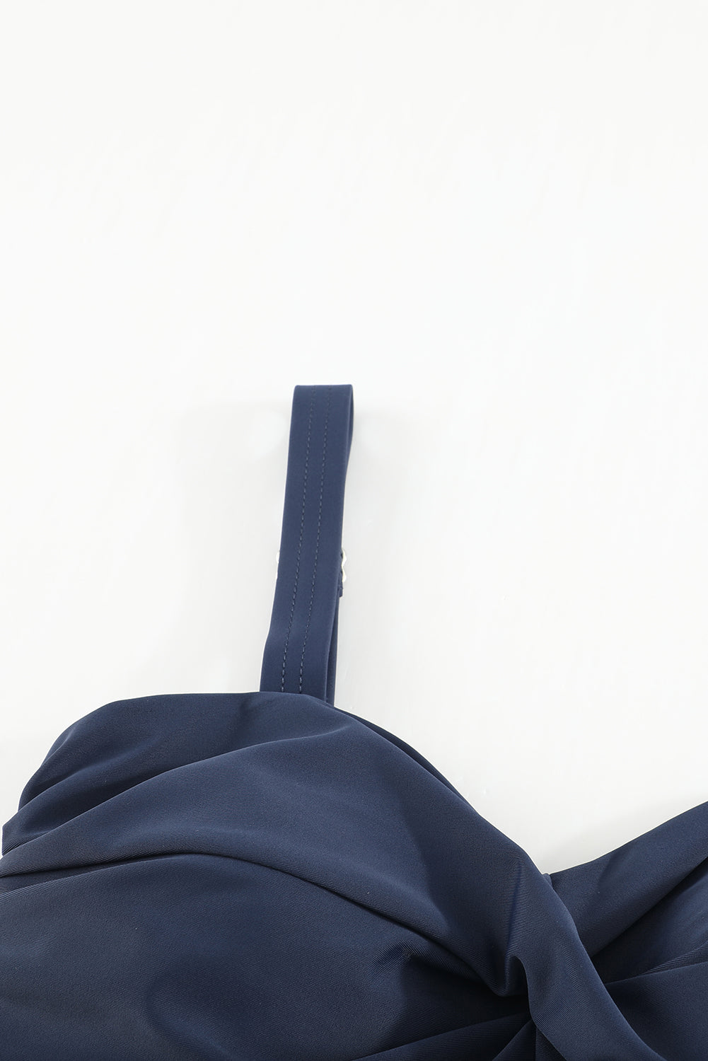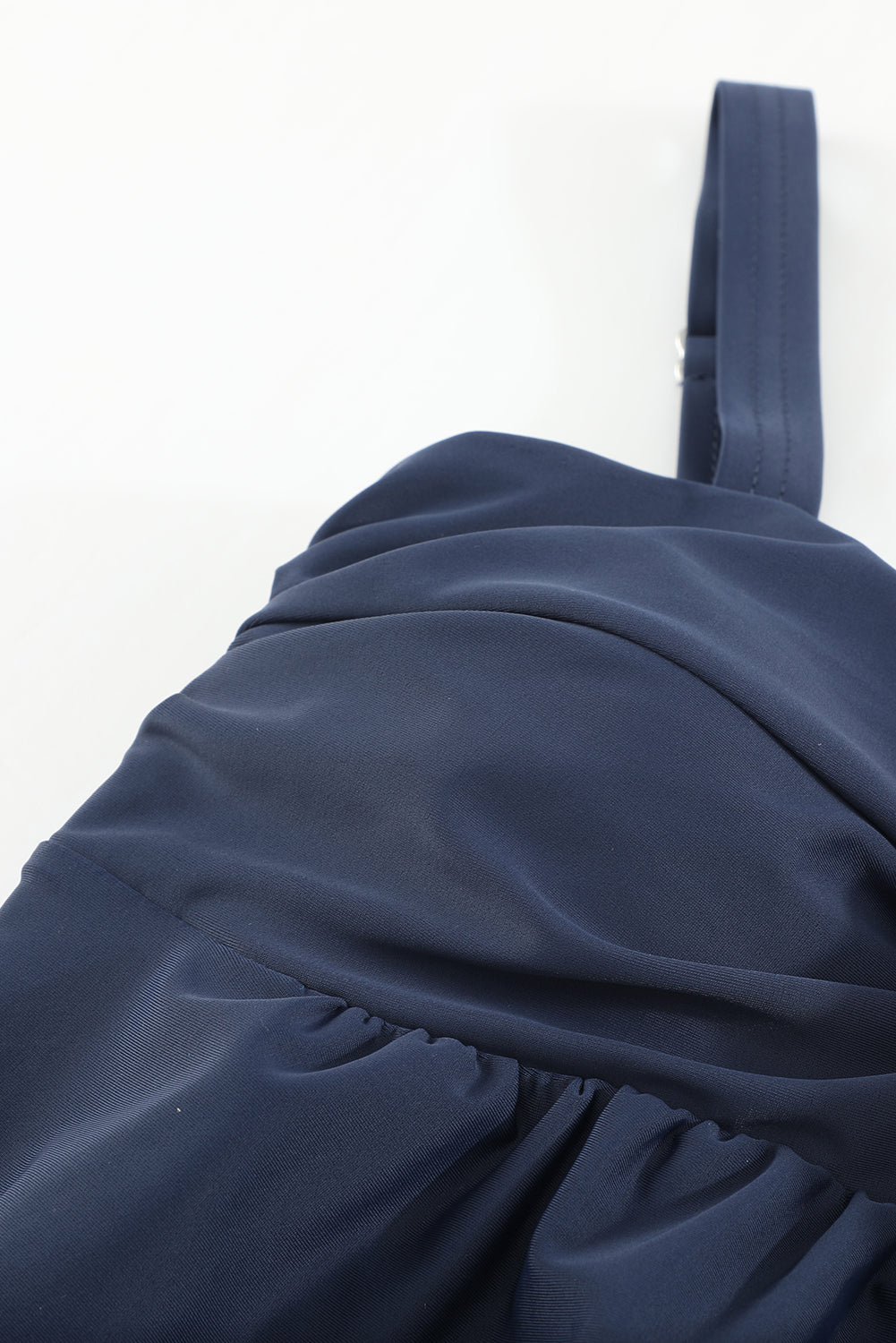 - Figure-flattering shirred bandeau swimdress with a bottom