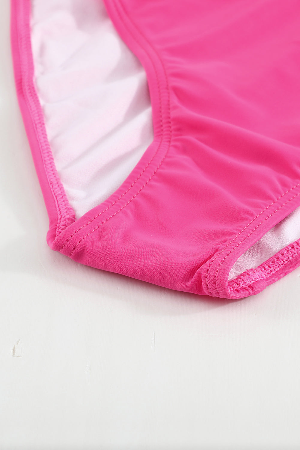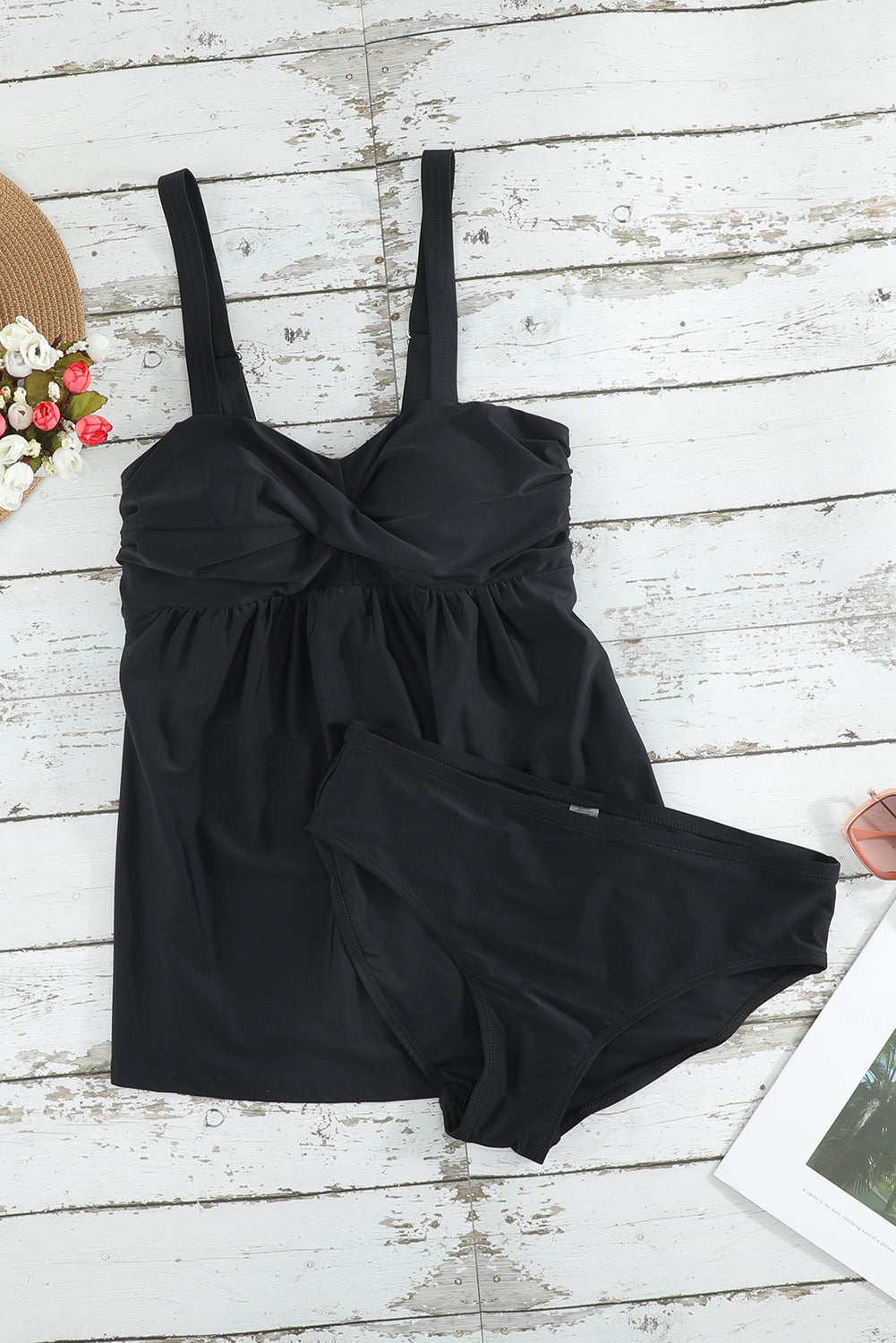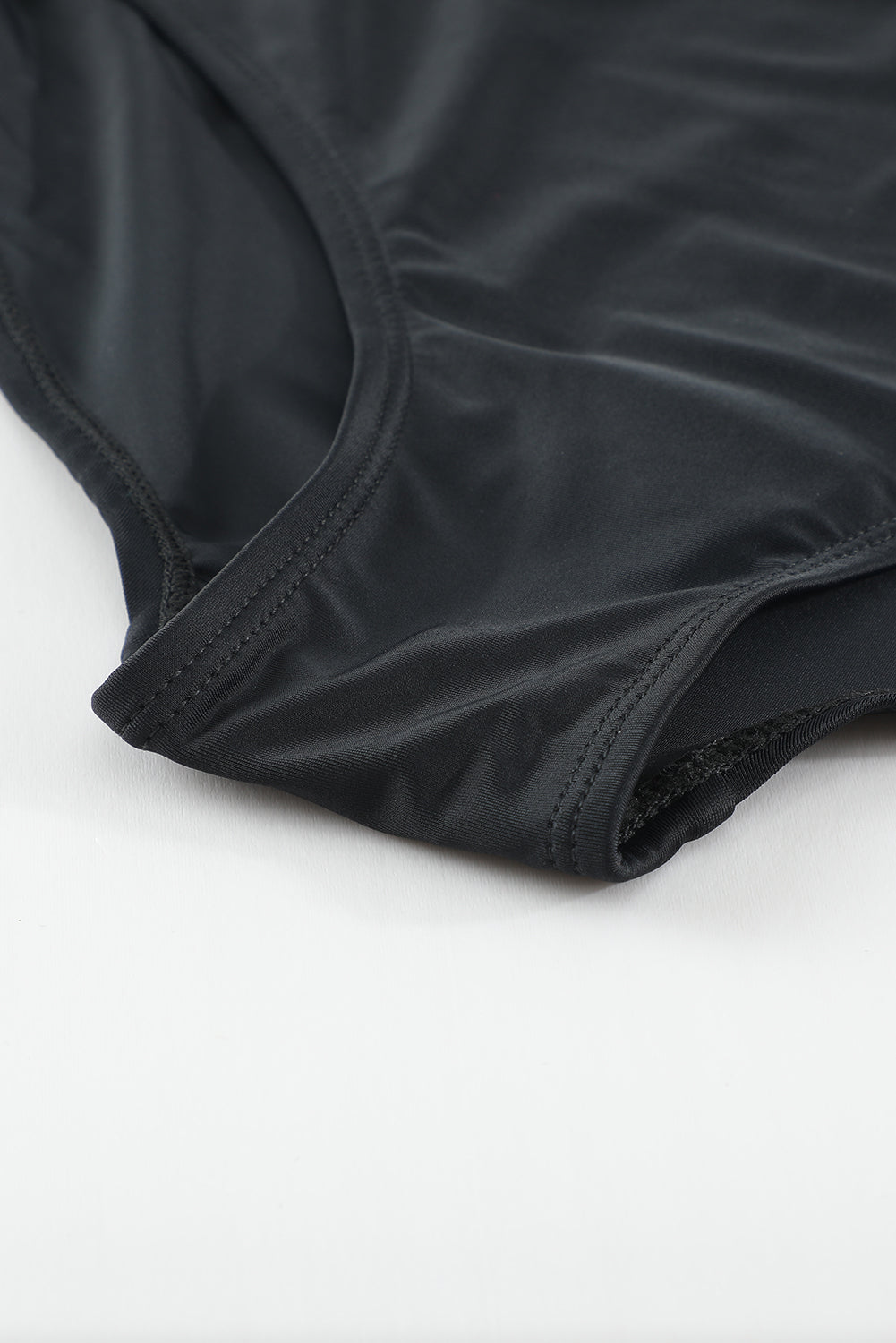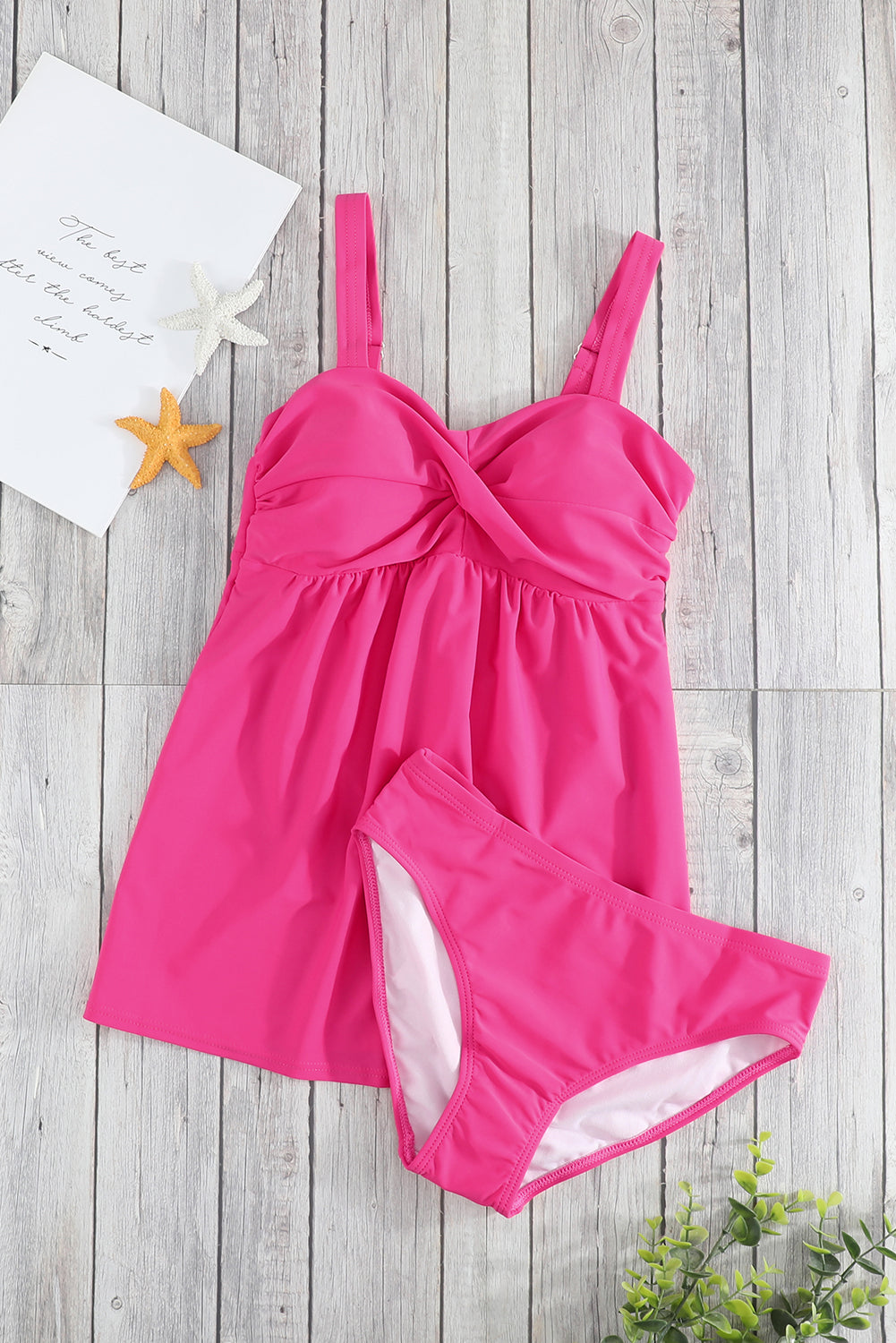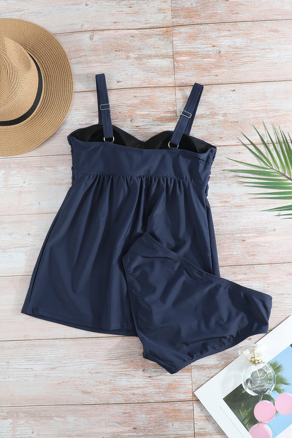 - Figure-flattering shirred bandeau swimdress with a bottom